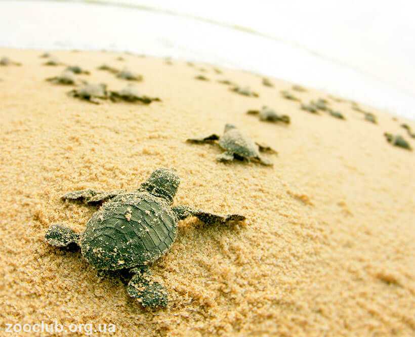 Вылупившиеся молодые черепашки сразу начинают ползти к воде – это их основной инстинкт. Полагаясь лишь на собственные силы, не все из них достигнут морских волн. Кто-то потеряется на полпути, а кого-то просто съедят чайки и мелкие хищники.