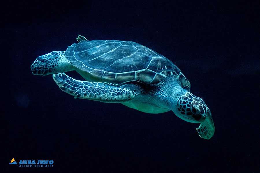 В нашем аквариуме живет одна молодая Зеленая Суповая черепаха. Для нее выделен отдельный аквариум
