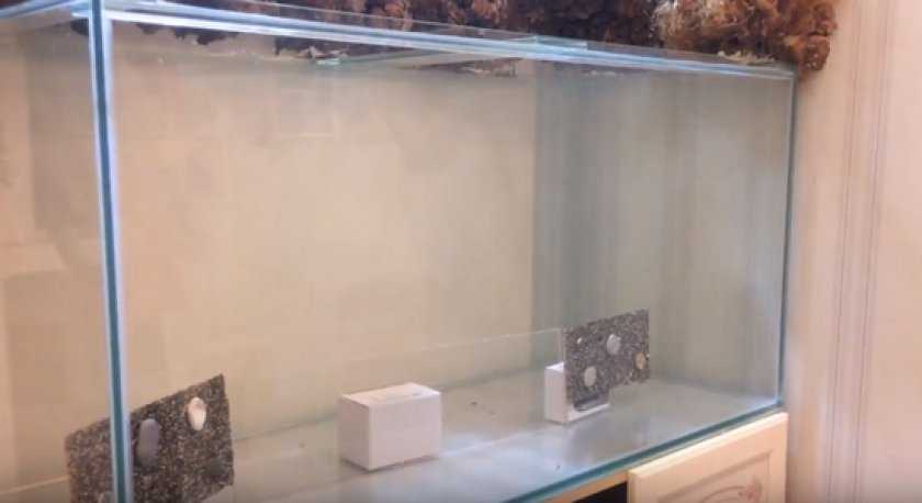 Если нет возможности использовать эти материалы, допускается сделать картонный короб, который будет размещаться на задней стенке наружной стороны аквариума. Такой короб должен соответствовать размерам самой емкости. Его окрашивают в необходимые оттенки или оклеивают цветной бумагой. Внутри него можно разместить ветви растений, камни, кору деревьев. Чтобы такой пейзаж всегда выглядел эффектно, необходимо часто мыть заднюю стенку аквариума.