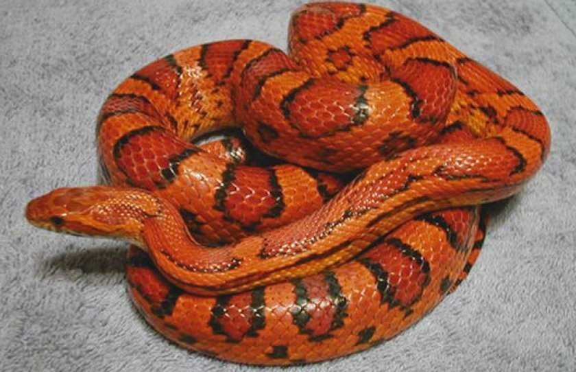 Общая информация: маисовый полоз (elapheguttata) – сегодня достаточно популярен у любителей змей, он отличается яркой красивой окраской и разнообразием цветовой гаммы и рисунка. Именно поэтому многие коллекционируют морфы маисового полоза. В природе этот вид змей живет в лиственных лесах, а также бесплодных землях, склонах скал на территории США, также его можно найти в Мексике или Каймановых островах. Главное занятие маисового полоза – охота на грызунов, мелких птиц и беспозвоночных, ящериц. Настигая добычу, они убивают ее сжатием.