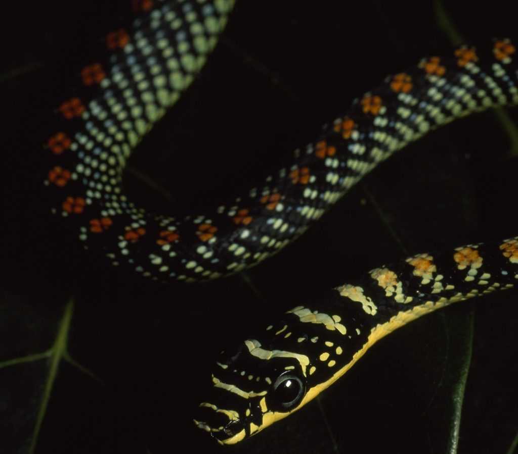 Эти змеи часто встречаются на пальмах, поэтому их иногда называют пальмовыми. Как раз она практически падает на человека с пальм.