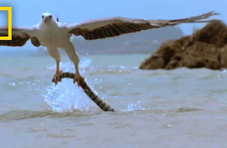 Если змея плавает по поверхности воды в прибрежной зоне, ее может схватить хищная птица, например, белогрудый орел или чайка.