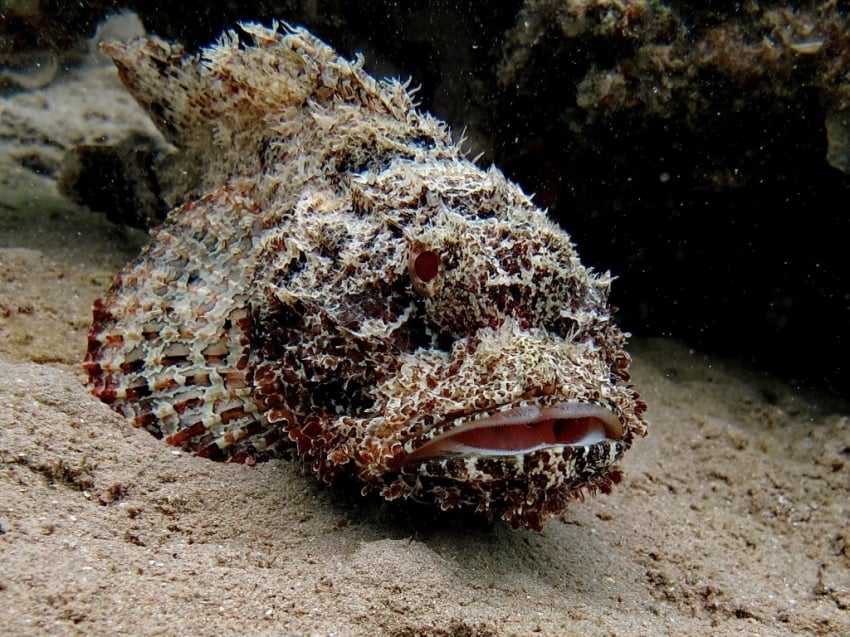 Так, с австралийской сушей все понятно, а что насчет прибрежных вод? Увы, здесь тоже нужно быть крайне внимательным, поскольку совсем недалеко от земли обитает бородавчатка – обладательница самого токсичного яда среди рыб. Отравляющее вещество хранится в спинных шипах, которые рыба распушает при малейшем дискомфорте. Не обработанная в необходимые сроки рана от проникновения шипа может вызвать смерть человека (яд настолько токсичен, что на это потребуется всего пара часов). Бородавчатки мастерски маскируются, зарывшись в песок или спрятавшись между камней – заметить рыбу заблаговременно практически нереально. Кроме того, эти существа могут оказаться и на суше, причем в добром здравии (бородавчатка может жить вне воды до 20 часов).
