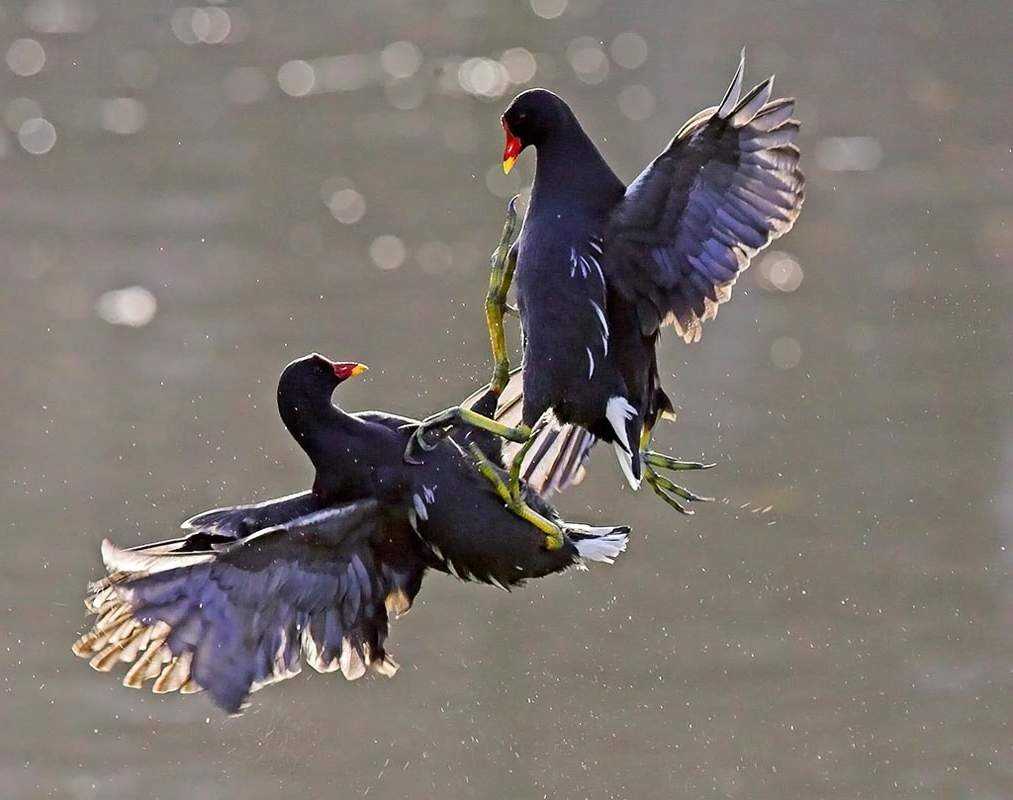 По-научному камышницу называют «зеленоногая курочка» — и, действительно, внешне она очень напоминает привычных домашних кур. Сама по себе птица вырастает средней величины — весом максимум до 500 грамм, а длиной обычно до 30 см — приблизительно как хорошая куропатка. Обычно они гнездятся парами, избегая общества других пернатых, тщательно охраняя территорию. Но это не касается зимних холодов — в это время камышницы собираются вместе (иногда даже до 50 пар). И иногда птицы могут даже драться между собой. При этом территорию пары нельзя назвать обширной — она ограничивается 12 метров в диаметре.