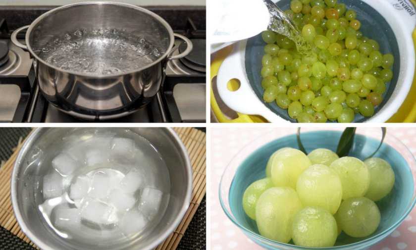 - Нужно опустить ягодки в кастрюлю с кипящей водой на несколько секунд.
