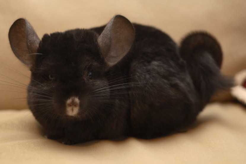 К этим грызунам относят шиншилл оттенка черный бархат, имеющих насыщенный черный оттенок меха и белый живот.
