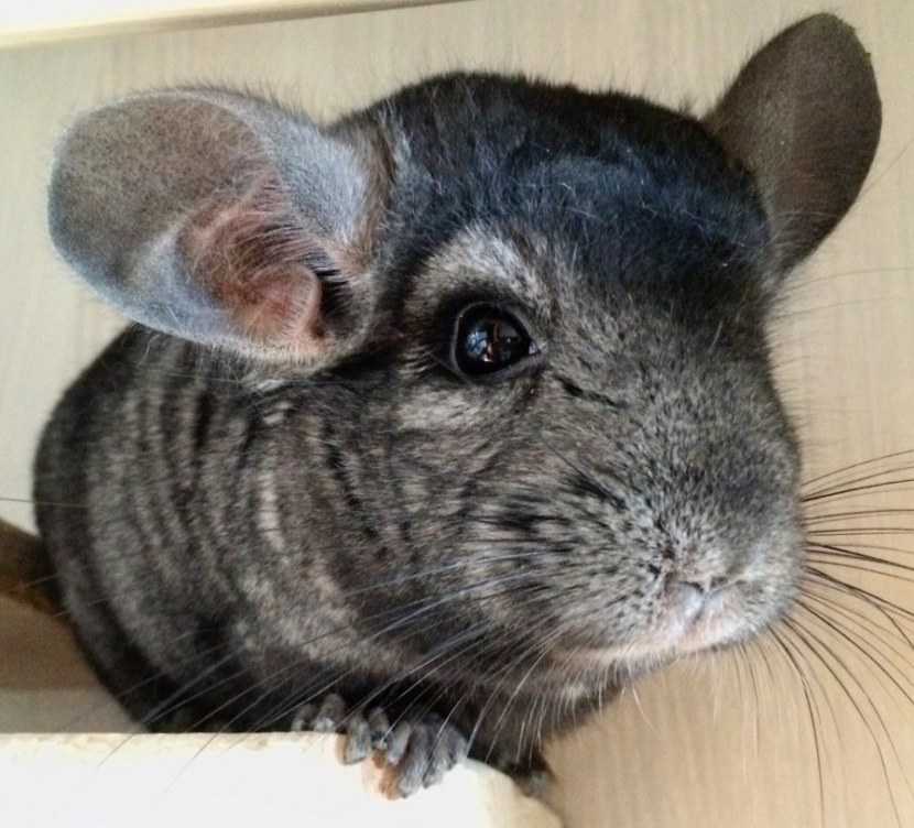 Шиншилла туманная. Зверек темно-серого окраса с нечетким рисунком на мехе.
